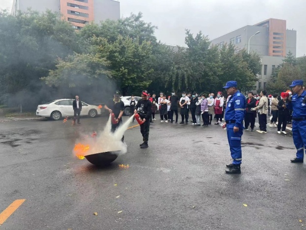 理论培训结束后,王慧祥带领参训人员在勤公楼后侧停车场进行了干粉灭火器的实际操作演练。随后,全体人员到沁嘉园餐饮中心聆听王平伟现场讲解厨房燃气泄漏后的正确处置流程及注意事项。