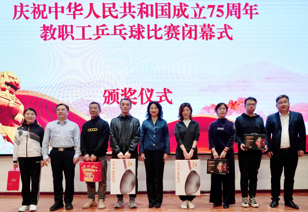9月26日中午,“庆祝中华人民共和国成立75周年”教职工乒乓球比赛闭幕式于华体买球报告厅举行。校党委书记赵毅、党委副书记宋明凯、副校长罗旭东出席闭幕式。工会主席刘宝主持闭幕式。