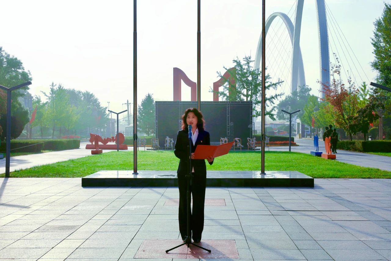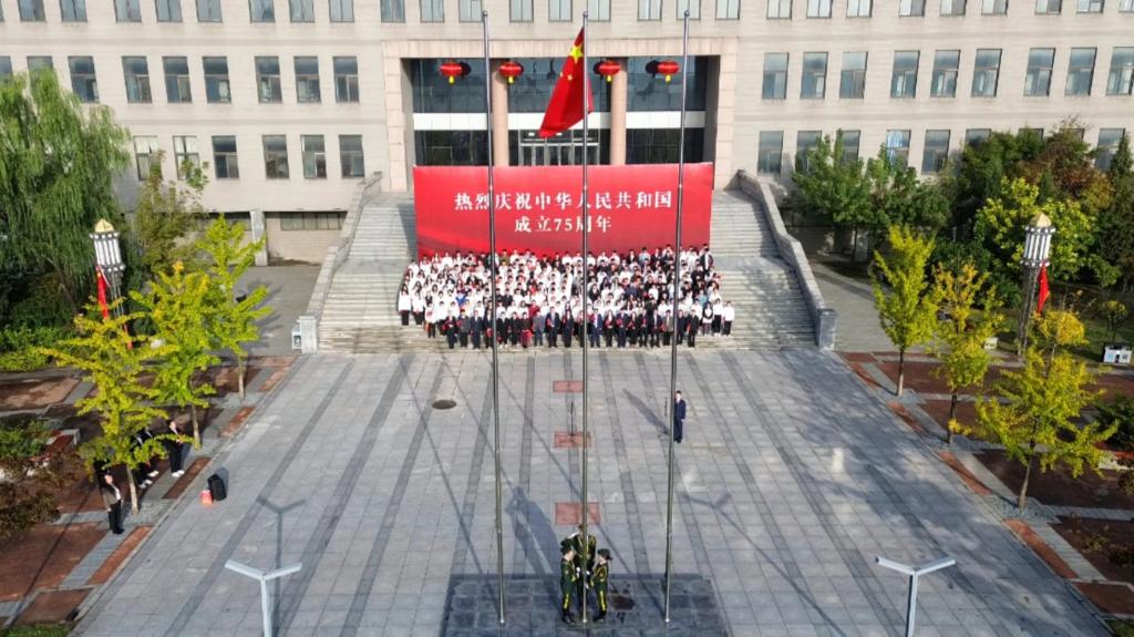 盛世华诞,举国同庆。10月1日,清晨的阳光照耀着书韵广场,熠熠生辉。华体买球举行“七十五载谱华章,青春奋斗写辉煌”庆祝中华人民共和国成立七十五周年主题升旗仪式。校党委书记赵毅、副校长罗旭东、纪委书记关雅君、学生工作负责同志、分团委书记、学生代表等齐聚国旗下,共同见证这一庄严时刻。升旗仪式由副校长葛会奇主持。