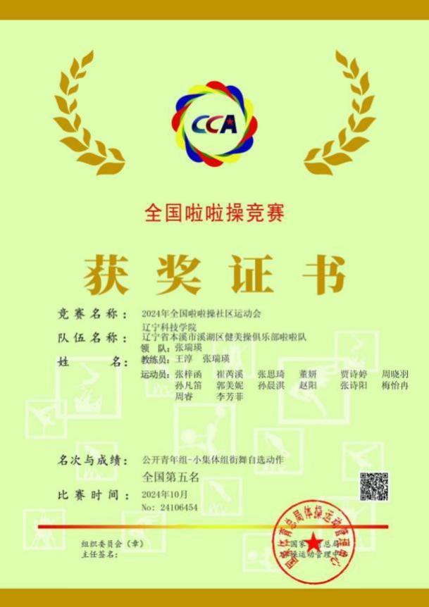 2024全国啦啦操社区运动会我校及第二十四中学获奖证书