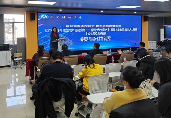 赵毅致辞。她强调,学校始终将毕业生就业工作作为重点工作,2024年毕业生就业率与在辽就业率位列全省本科高校前列,擦亮了毕业生“下得去,用得上,留得住,离不开”的辽科品牌。她鼓励参赛选手勇于尝试挑战,深入了解专业,将自身发展融入国家发展大局,在实践中不断摸索适合自身发展的职业生涯。