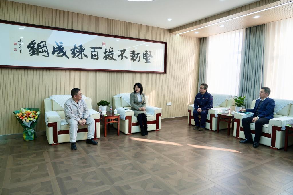 在交流中,赵毅对鞍钢集团长期给予学校的关心和支持表示感谢。她指出,学校与鞍钢集团一直保持着良好的关系,学校培养的大批毕业生在鞍钢集团工作,并逐步在生产作业一线成长为骨干力量。一直以来,学校的特色优势专业与集团发展需求高度契合,希望以此次深入交流为契机,深耕应用型人才培养,推动产学研深度融合,促进科技成果转化落地,联合党建红色文化育人,打造校企合作新典范。赵毅还与我校2006届毕业生,国务院专家津贴、国家级技能大师工作站核心成员、鞍钢集团首批特级技师彭东东亲切交流,为他在鞍钢工作取得的成绩感到骄傲,也欢迎他常回母校,为学弟学妹传授学习、工作经验,激发学弟学妹知钢懂钢、干钢爱钢的钢铁情怀,成为为国奉献钢筋铁骨的高素质人才。