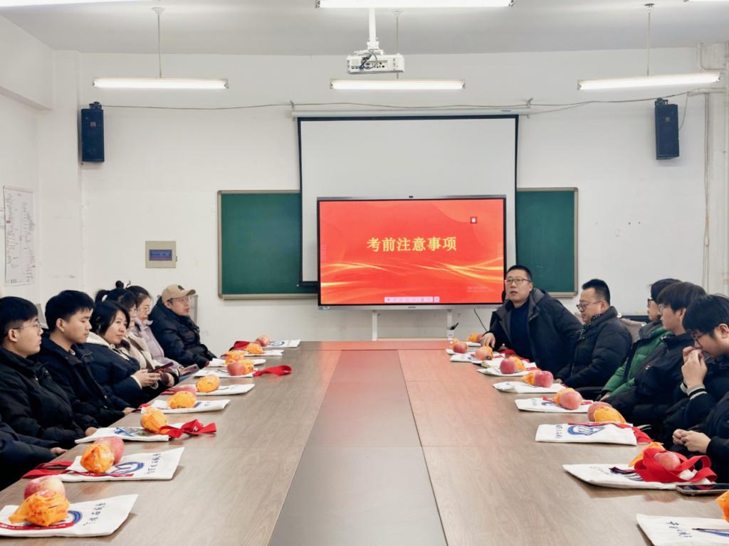 学院领导贴心地为考研学生送上了苹果橙子以及考试用具,寓意“苹”安顺遂、心想事“橙”,祝愿考研学生考试过程平平安安,得偿所愿,金榜题名。
