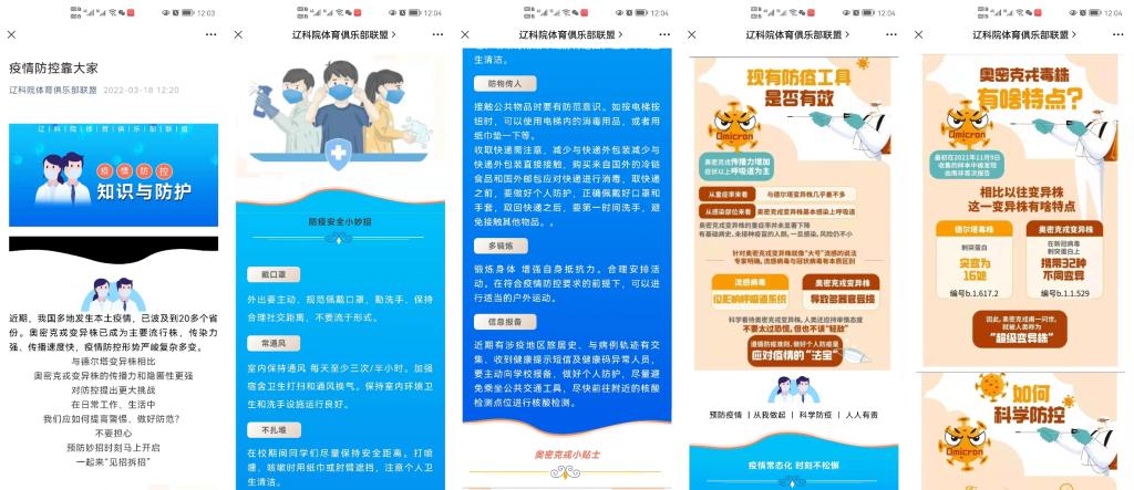 作为电信学院兼职辅导员及自BZ21、电气BZ21班主任,王南同志在工作间余,主动深入学生寝室,积极开展在校学生的思想教育工作,了解学生所需、所想,最大程度保障学生学习、生活,引导学生调整心态,乐观向上面对疫情。体育部的体育俱乐部联盟微信公众号还适时发布了《疫情防控靠大家》的宣传内容,并由体育部全体教师转发至任课班级微信群,配合学校对学生进行疫情防控指导和宣传。